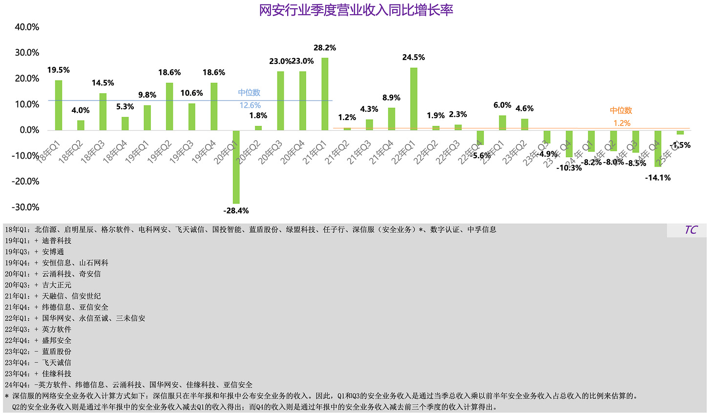 年报全出,网络安全行业营收继续萎缩,去年Q4同比下降14.1%,今年Q1下降1.5%
